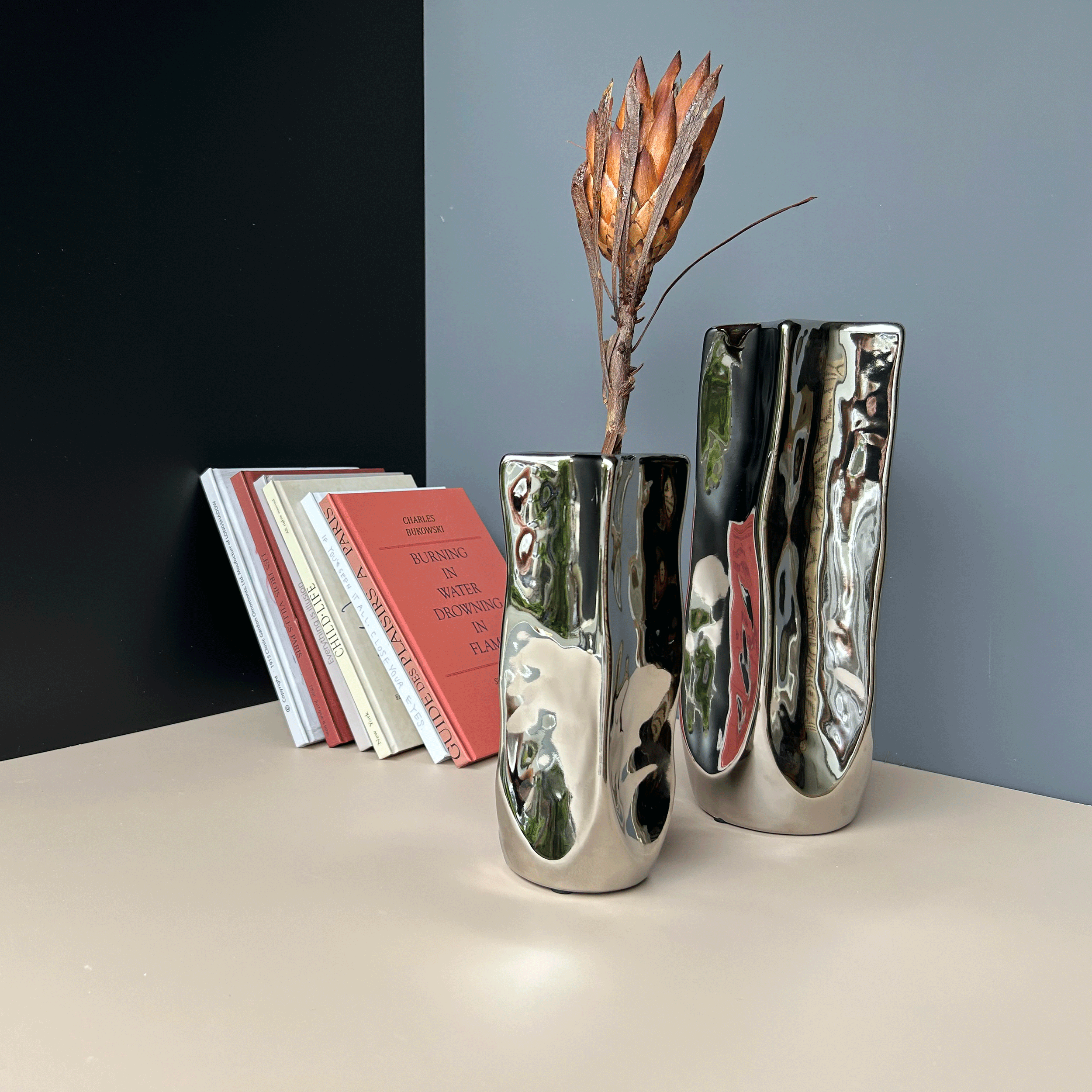 このフラワーベースは、単なる「花を飾る器」という概念を超え、暮らしの中に静かな問いかけを投げかけるアートピース。