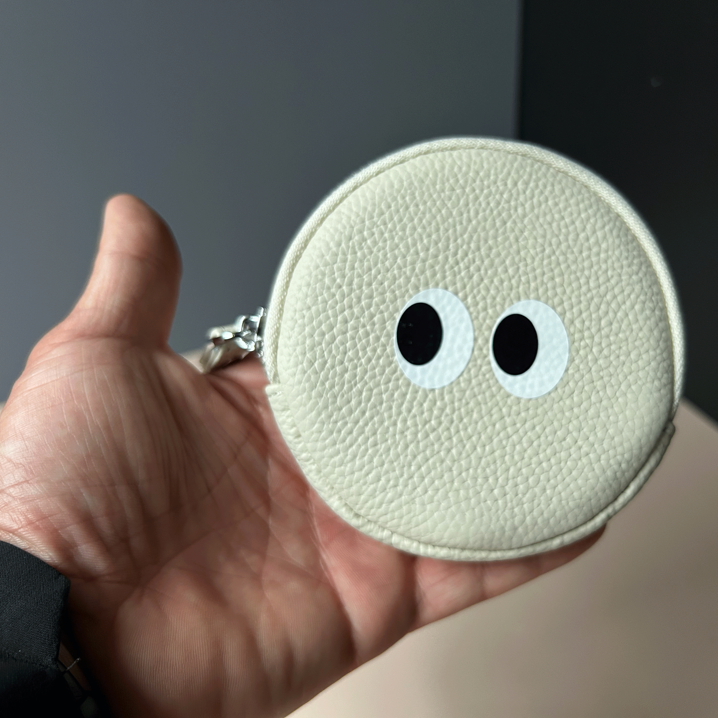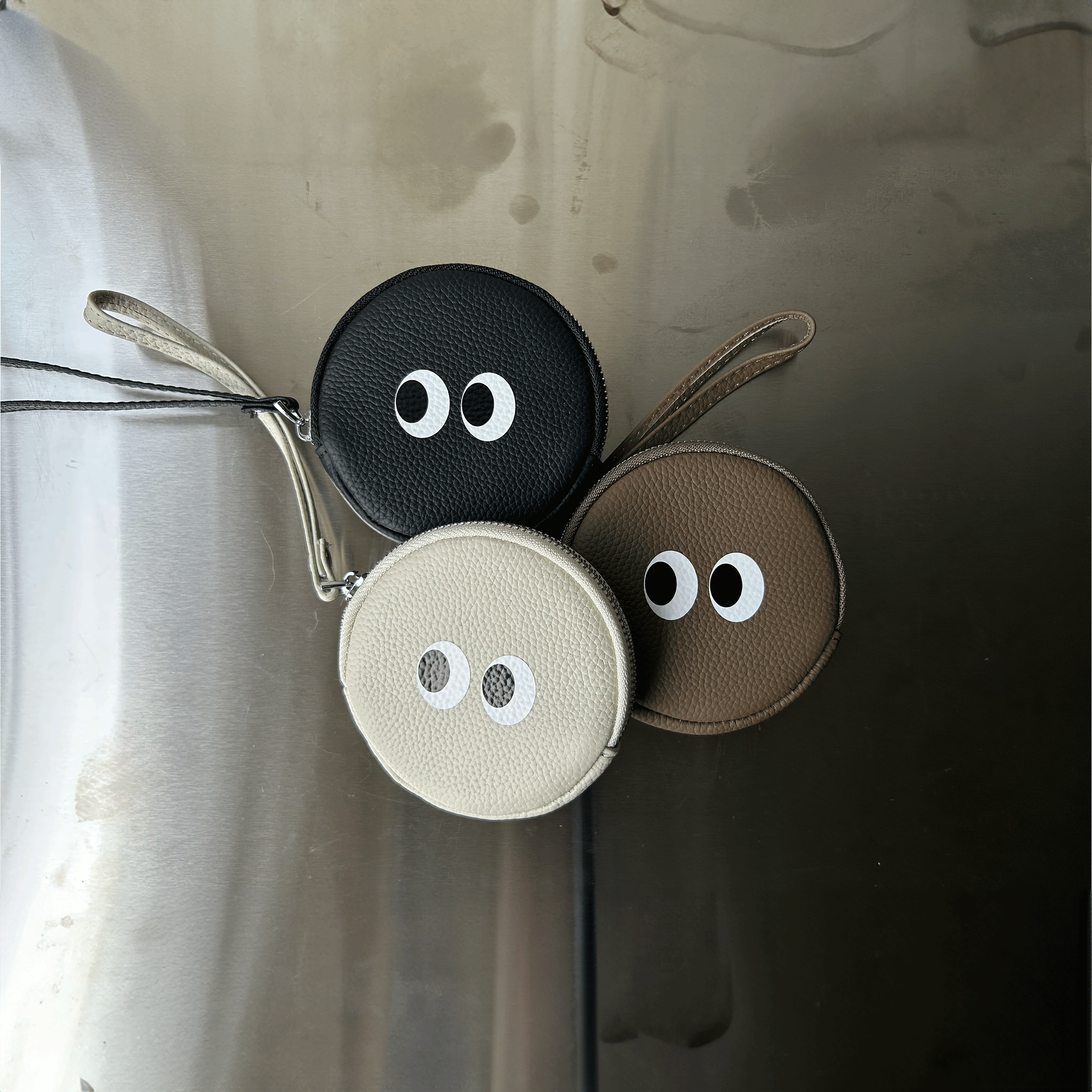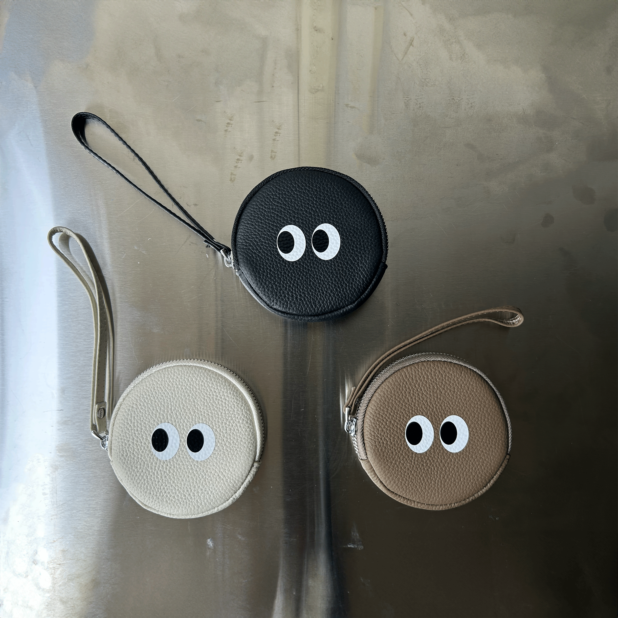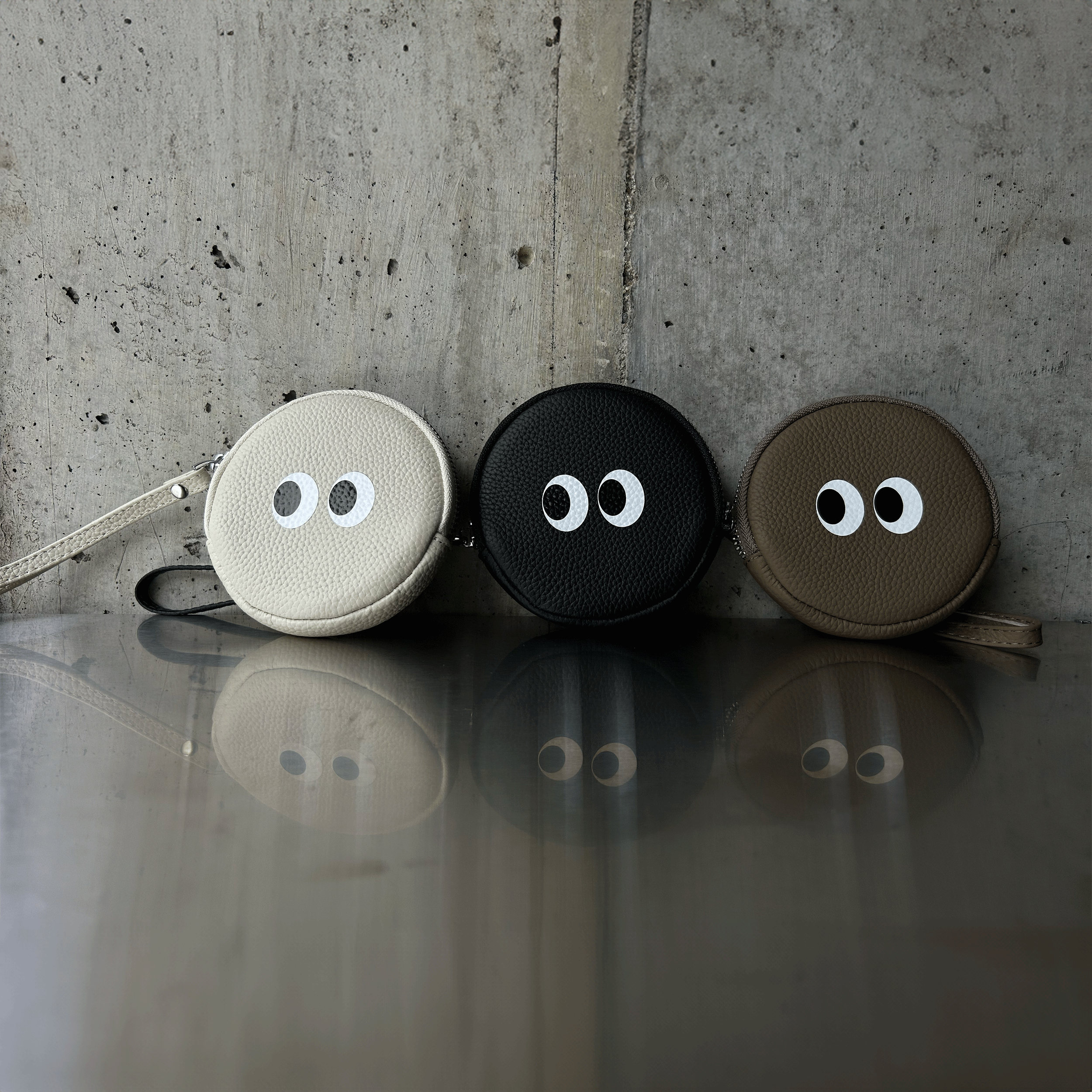目のデザインがさりげないユーモアを添えつつ、ブラウン、ブラック、ホワイトの色展開でどんなスタイルにも合わせやすい。